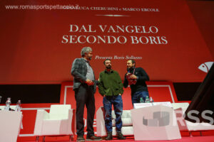 Tra aneddoti divertenti e scenette improvvisate, lo sceneggiatore Giacomo Ciarrapico – che ha ricordato con commozione il collega e amico Mattia Torre, morto nel 2019 – assieme ad alcuni degli attori (perfettamente calati nella parte erano Andrea Sartoretti, Pietro Sermonti e Carlo De Ruggieri) hanno ricordato al pubblico i segreti del successo del prodotto “Boris”; nato praticamente dal nulla una quindicina di anni fa e divenuto presto un vero e proprio fenomeno di costume, intergenerazionale come pochi, grazie al semplice passa parola.