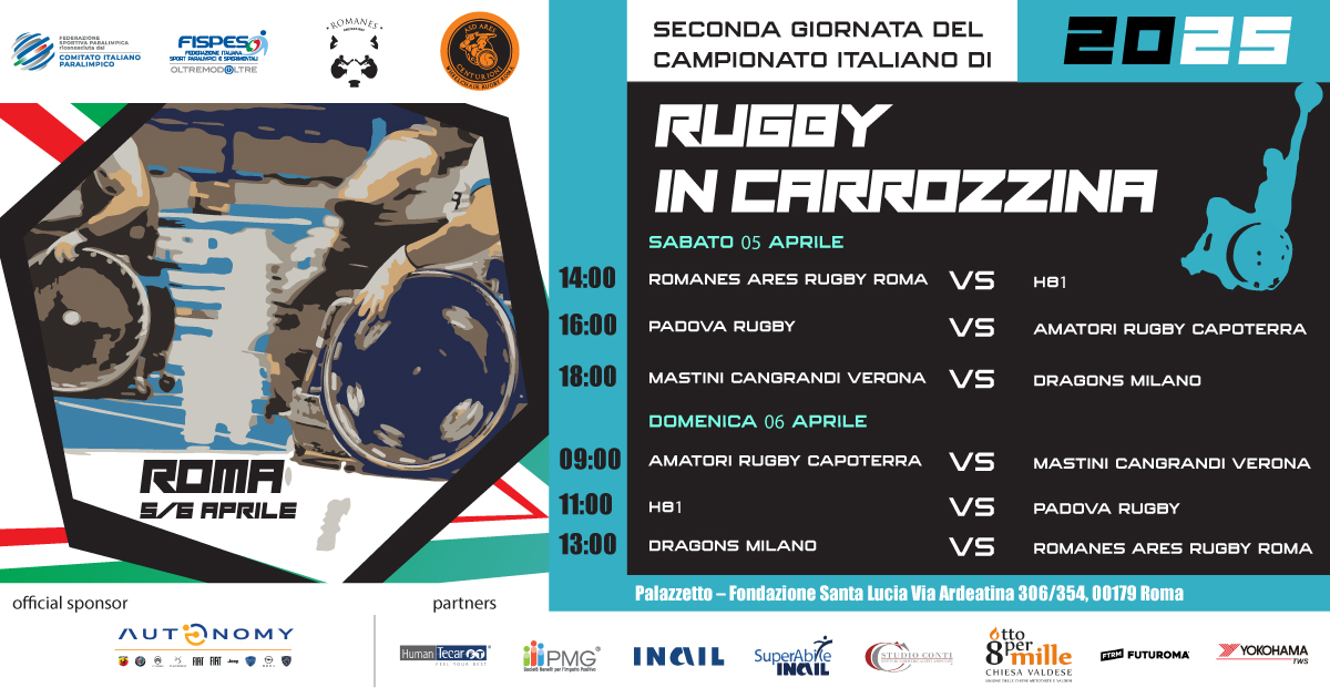 Rugby in carrozzina: conclusa a Roma la seconda giornata del Campionato Italiano 2025 Si è conclusa ieri, domenica 6 aprile, presso il Palazzetto della Fondazione Santa Lucia di Roma, la seconda giornata del di Riccardo Piccioli 07 Apr, 2025