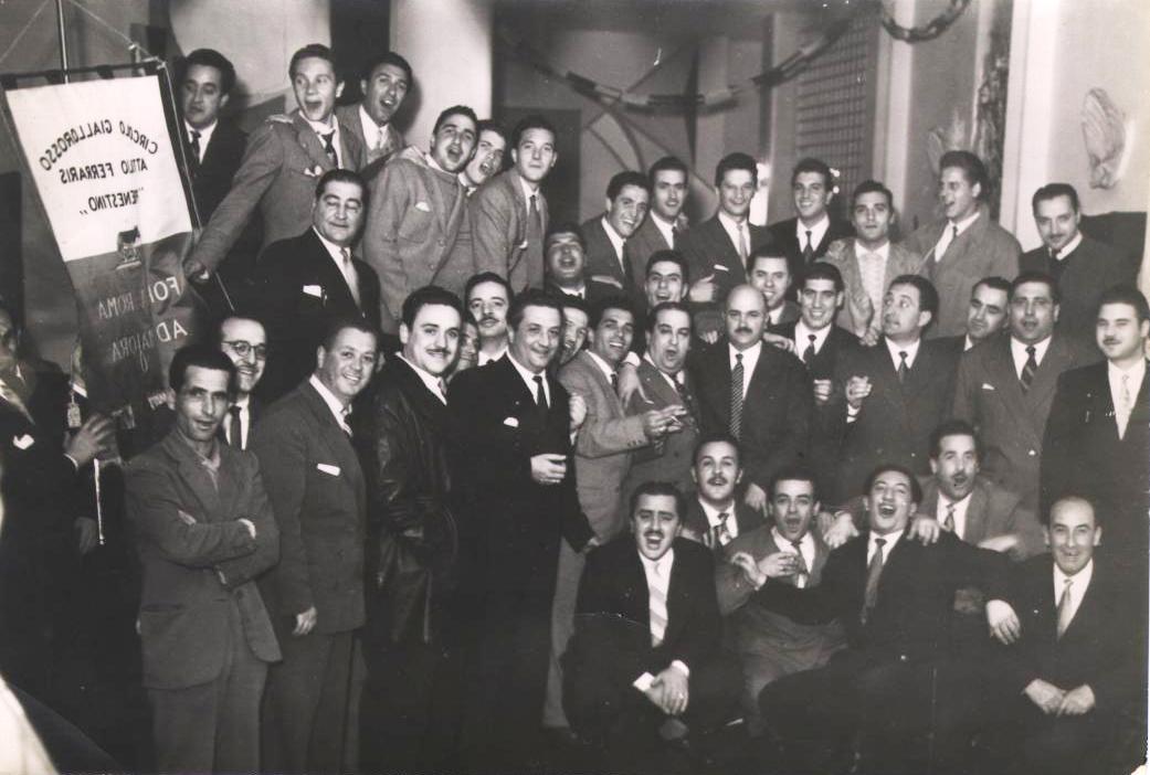 Nella sua sede a via Saint Bon, civico 47, nel dicembre dello stesso anno il circolo capostipite indice un incontro con altri tifosi di Frosinone, Rieti e Viterbo. L’obiettivo è allargare l’ambito oltre i confini della Capitale, e si parla di deliberare uno statuto sociale. Accanto al Trionfale e ad altri ruppi organizzati che nascono in rapida sequenza al Flaminio, a Trastevere, all’Appio-Tuscolano e a Primavalle, vediamo spuntare club, o piuttosto covi da bar, anche a Palestrina, Bracciano, Tivoli, Oriolo Romano, Latina. Ed è da tutti questi paesi, e da alcune cittadine della regione, che convergono, alla domenica e mai visti prima, i torpedoni, le “carovane” e i “treni biancazzurri” per incitare una squadra che, giusto in quegli anni, ottiene ottimi piazzamenti nella massima serie. Sto parlando della Lazio di miti che citava il mio babbo Leto, marchigiano jesino immigrato, tipo Muccinelli, i fratelli Sentimenti, Vivolo, lo svedese Selmosson, la cui paventata cessione nel 1955 alla Roma sollevò proteste accorate.