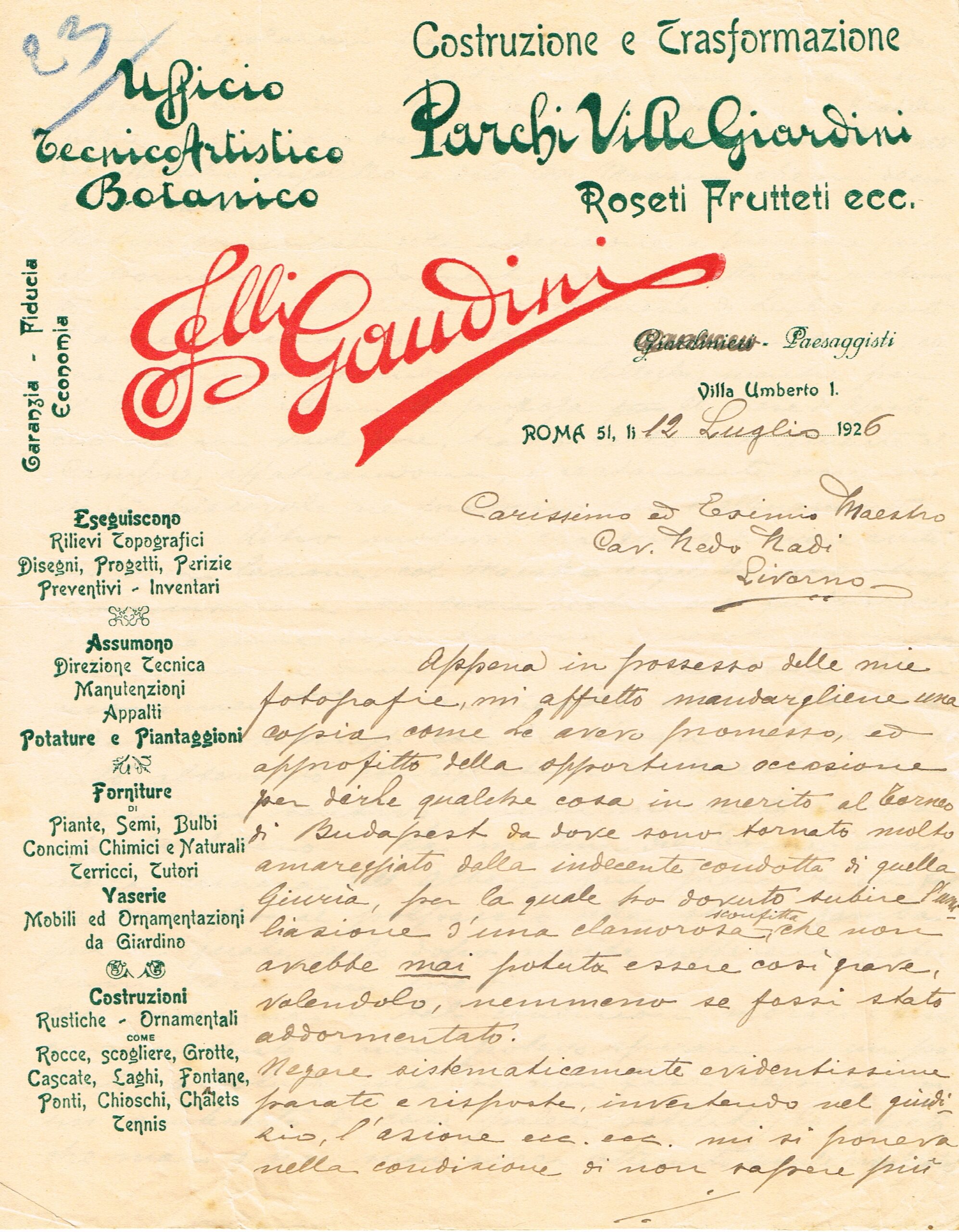 Una lettera di Gaudini a Nedo Nadi