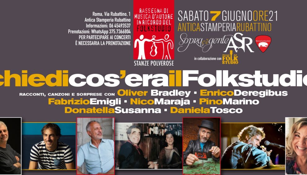 L’appuntamento, ospitato dall’Antica Stamperia Rubattino di Roma, rappresenta la serata conclusiva della rassegna “Stanze polverose”, iniziata a febbraio con l’obiettivo di raccontare — attraverso incontri, testimonianze e canzoni — l’anima profonda di un luogo che ha segnato un’epoca. Curata dal giornalista e operatore culturale Enrico Deregibus, la serata sarà una vera e propria celebrazione della cultura musicale romana, un mosaico composto da ricordi, voci e volti che hanno attraversato il Folkstudio e lasciato un segno indelebile.