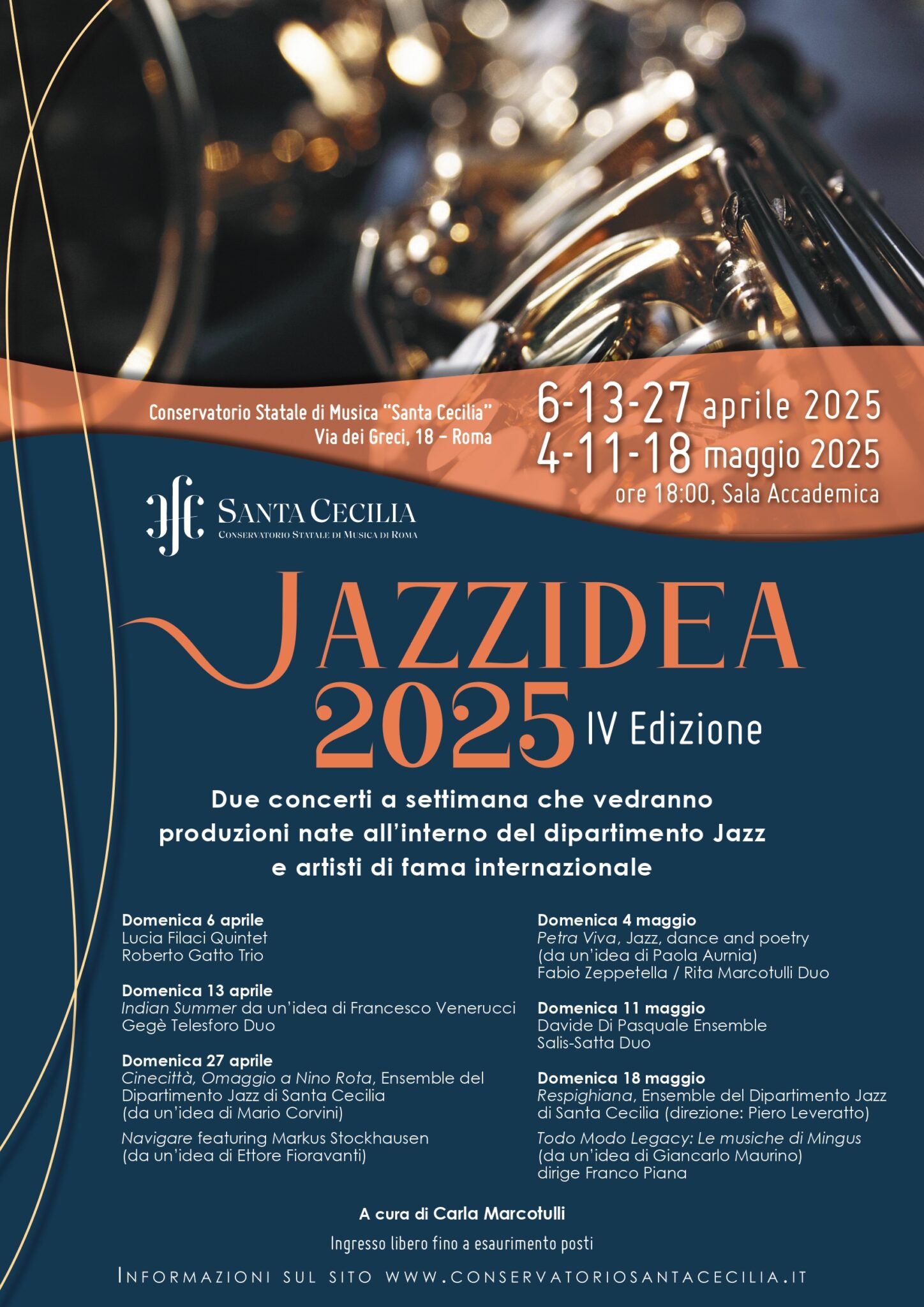 Tutti gli appuntamenti si svolgono nella Sala Accademica del Conservatorio di Santa Cecilia, in via dei Greci 18. L’ingresso è gratuito fino a esaurimento posti.