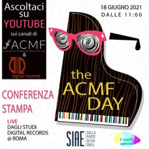 The ACMF Day sarà visionabile in tutto il mondo attraverso una diretta streaming che sarà trasmessa dalle postazioni social YouTube della Associazione e della Digital Records; tra i Soci Promotori di questa realtà associativa, compositori del calibro di Stefano Caprioli, Riccardo Giagni, Andrea Guerra, Stefano Mainetti, Lele Marchitelli, Claudio Messina, Roberto Pischiutta, Kristian Sensini, Giuliano Taviani; e tra i soci onorari eccellenze del calibro di Michael Nyman, Nicola Piovani, Roger Waters, Hans Zimmer. Tra le fila dei soci membri, oramai oltre un centinaio, troviamo giovani talenti del nostro Paese accanto a nomi illustri e dalla carriera consolidata ed internazionale. Il giorno della conferenza stampa saranno rivelati i contributi musicali effettivi fruibili liberamente dal pubblico della Rete nella giornata del 19 giugno, e verrà illustrato come si svolgeranno.