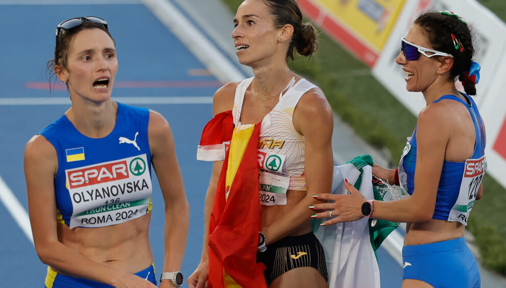 Esatto, noi ci ridiamo, ma anche quello che è accaduto ieri a Roma, nella 20 Km di marcia è una tragedia per Laura Garcia-Caro che, a poche decine di centimetri dal traguardo, ha alzato il braccio, salvo poi con la coda dell’occhio, vedersi superata dall’ucraina Olyanovska, ancora avvolta dalla bandiera nazionale spagnola. Inutile il tentativo di ripredere quell’ultimo ritmo mancante, sopperire a quell’effetto sorpresa che ormai ha condannato la spagnola a scendere giù dal podio lasciando la medaglia di bronzo custodita dai colori giallo-blu.